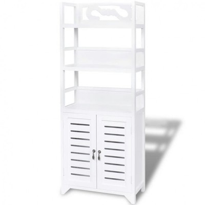 Wooden Tall Bathroom Cabinet With Shelves Cupboard Floor Standing