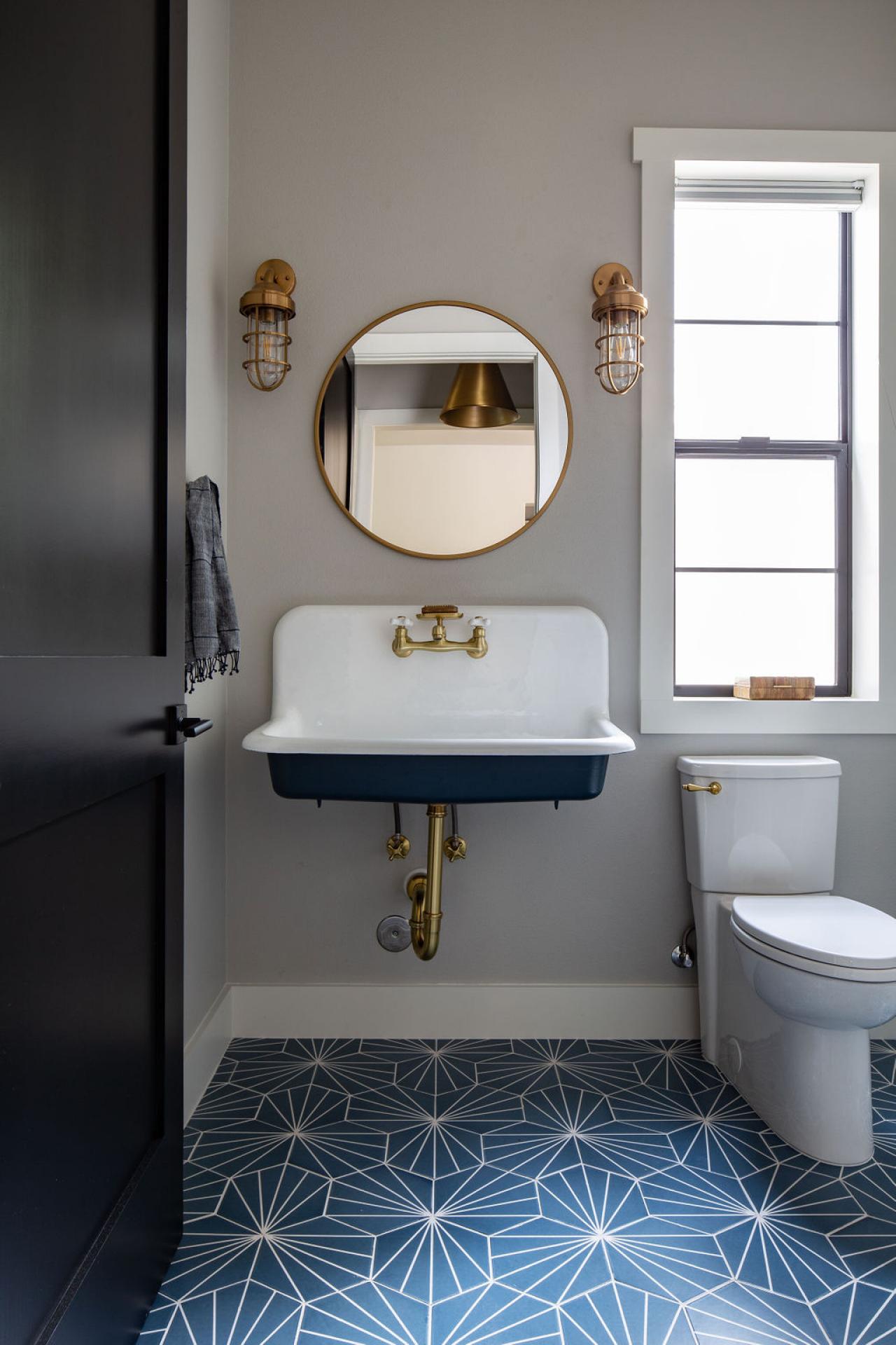 Contemporary Bathroom With Navy Geometric Floor Tiles Hgtv