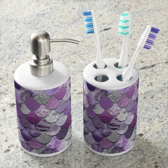 Purple Mermaid Scales Bathroom Accessories Bath Set Zazzle Com