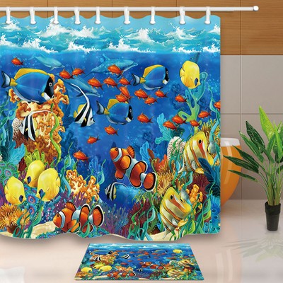 Colored Cartoon Sea Creatures Fish Flower Bathroom Fabric Shower