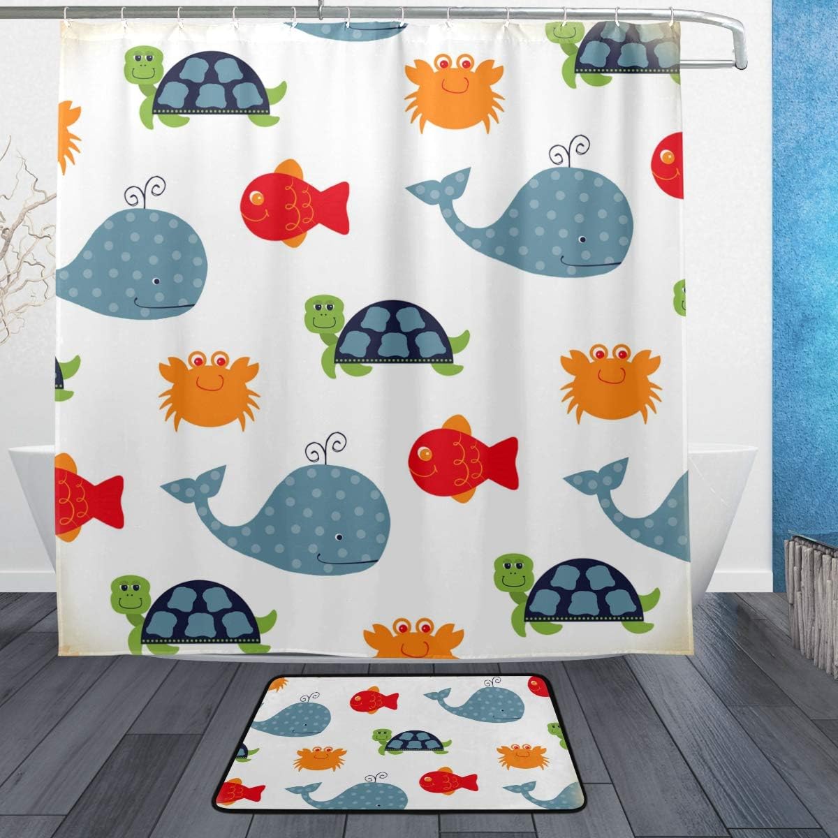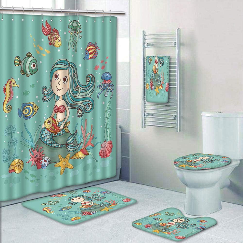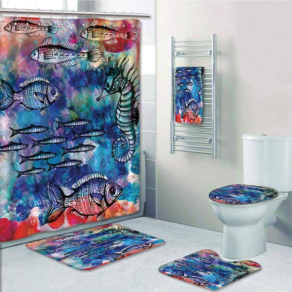 Amazon Com Lorvies Sea Creatures Bathroom Set Polyester Fabric