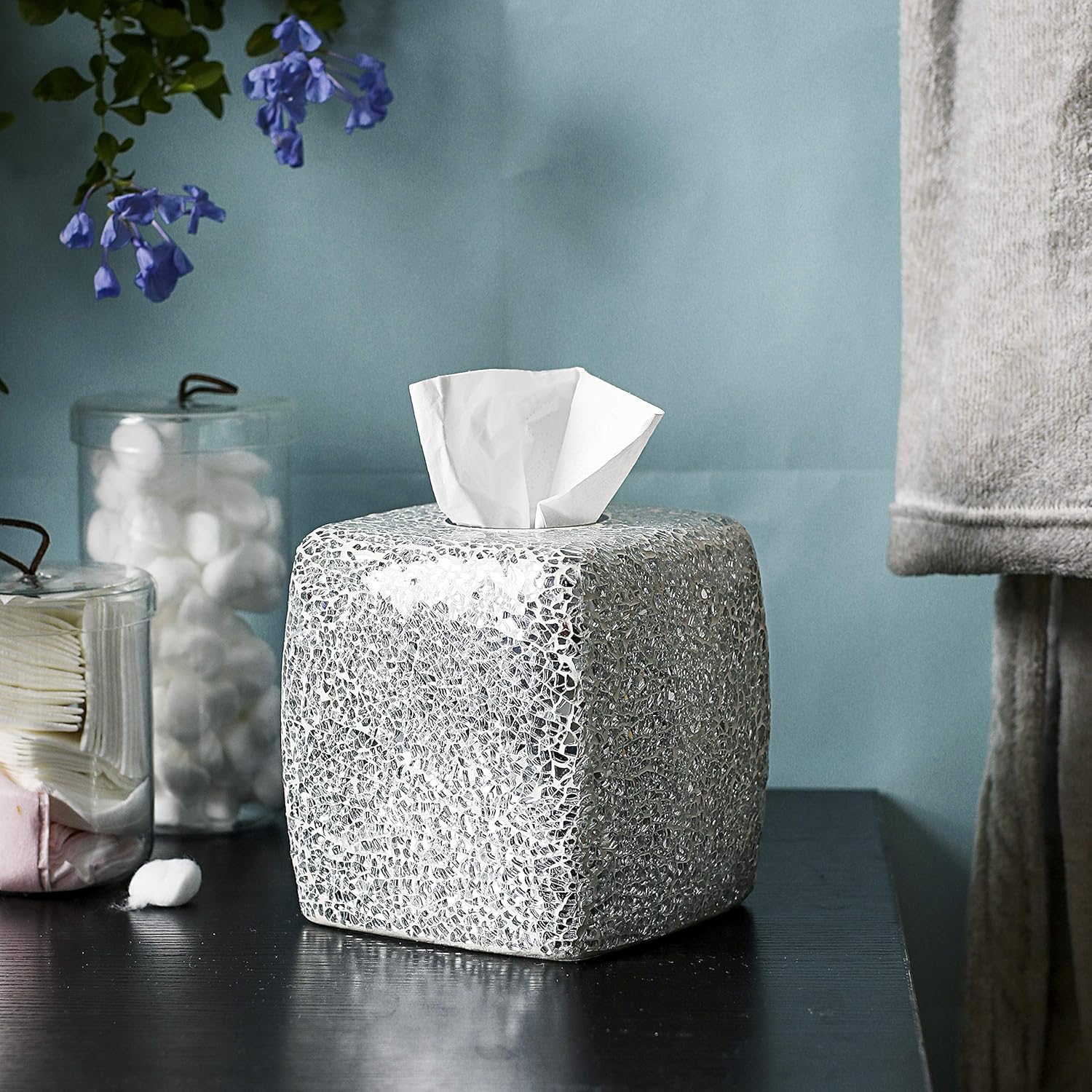 Teal Blue Gala Houseware Mosaic Glass Square Facial Tissue Holder