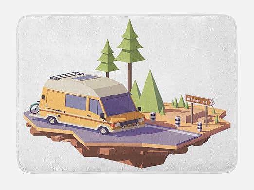 Amazon Com Lunarable Vintage Modern Bath Mat Low Poly Camper On
