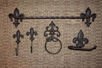 5 French Victorian Fleur De Lis Bathroom Accessories Vintage