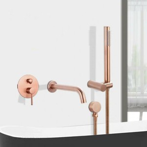 New Bathtub Faucet Brushed Rose Gold Wall Mounted Bathroom Shower