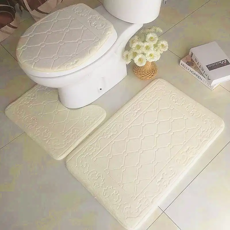 Three Pieces Of Absorbent Waterproof Floor Mats Flannel Embossed