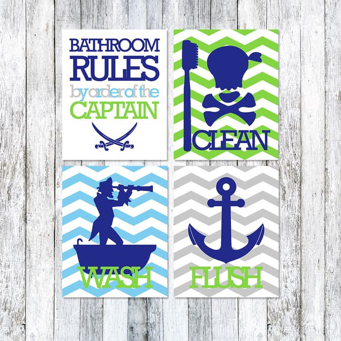 Pirate Toilet Rules Set Toilet Sign Bathroom Rules Poster
