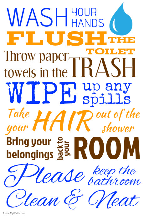 Bathroom Etiquette Poster White Background Etiquette Wash N
