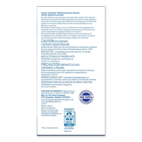 Clorox Scentiva Bathroom Foam Cleaner Pacific Breeze Coconut