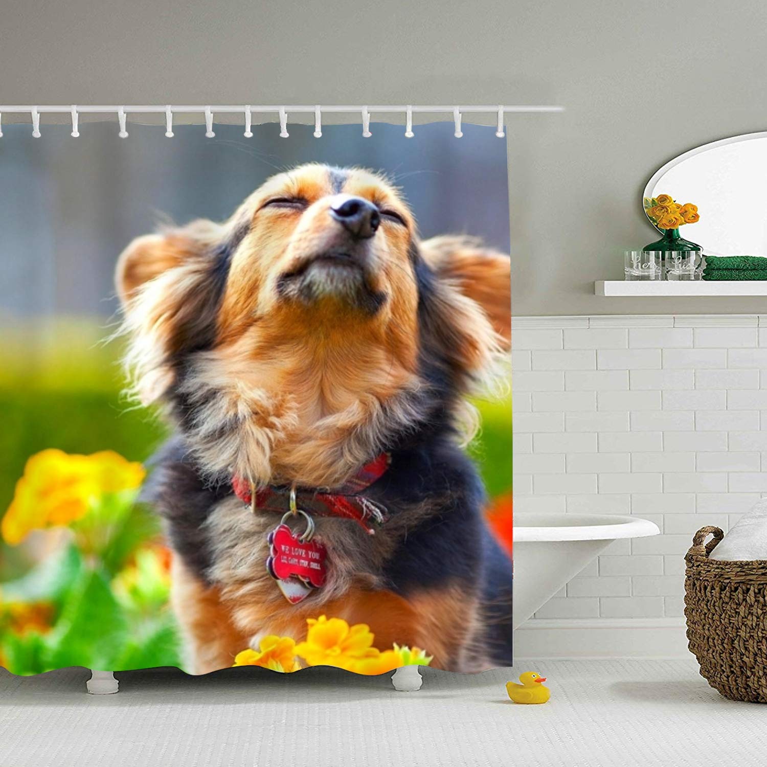 Amazon Com Xpniao Revel Dogs In Flowers Shower Curtain Extra