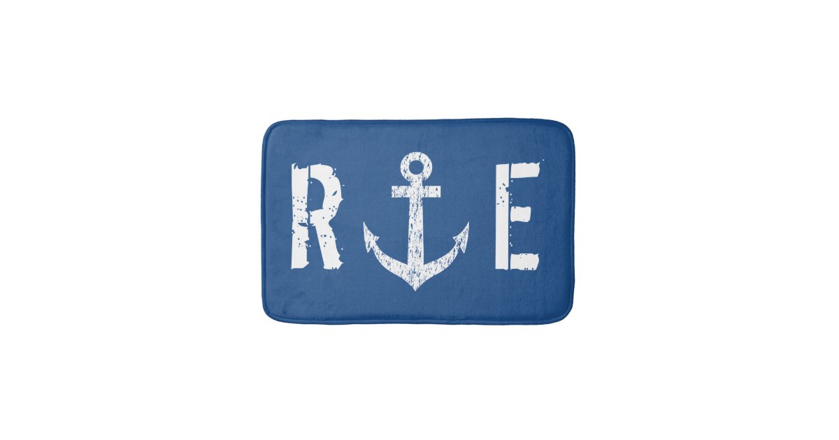 Nautical Navy Blue Anchor Monogram Bath Mat Rug Zazzle Com