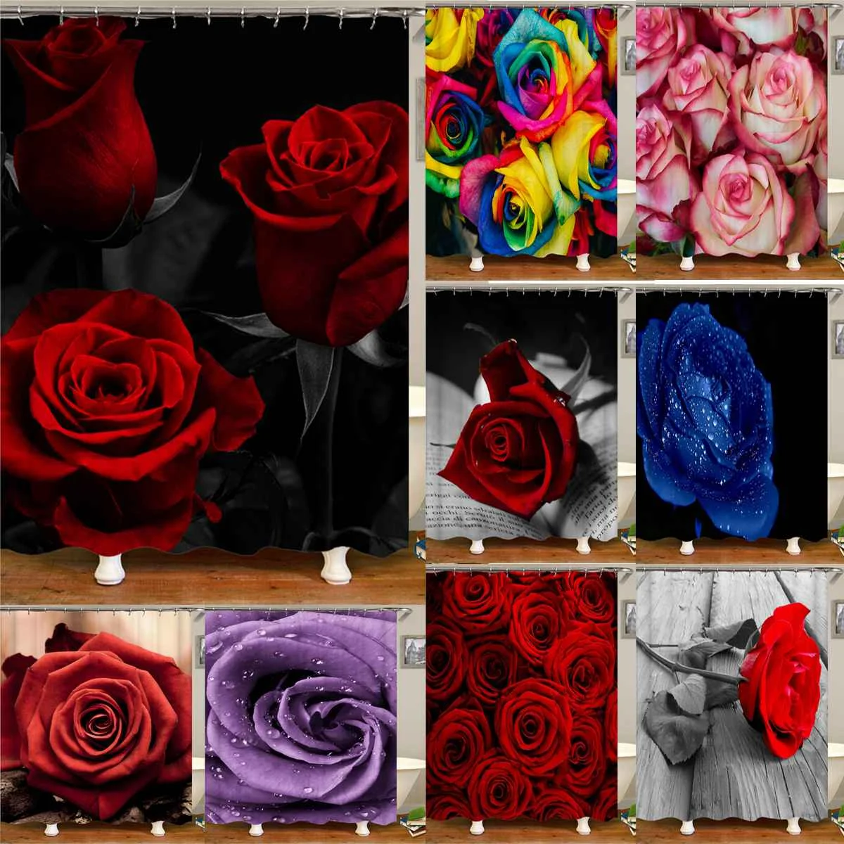 3d Red Rose Shower Curtains Bathroom Curtain Waterproof Polyester