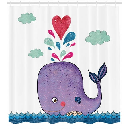 Whale Shower Curtain Cute Smiley Whale With Lovely Hearts And