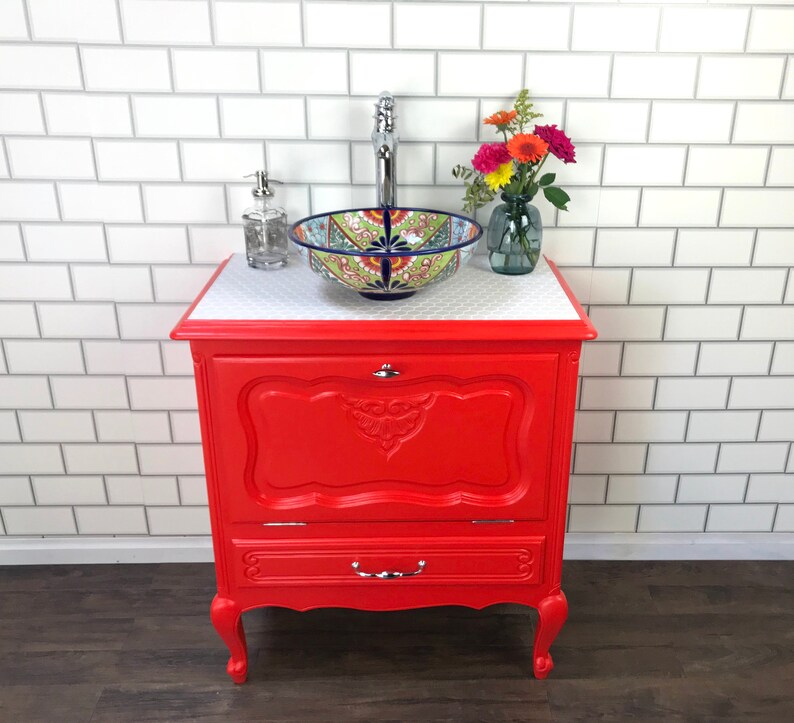 Red Vintage Bathroom Vanity Unit With Hand Painted Basins Etsy