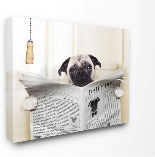 Amazon Com Stupell Industries Pug Reading Newspaper In Bathroom