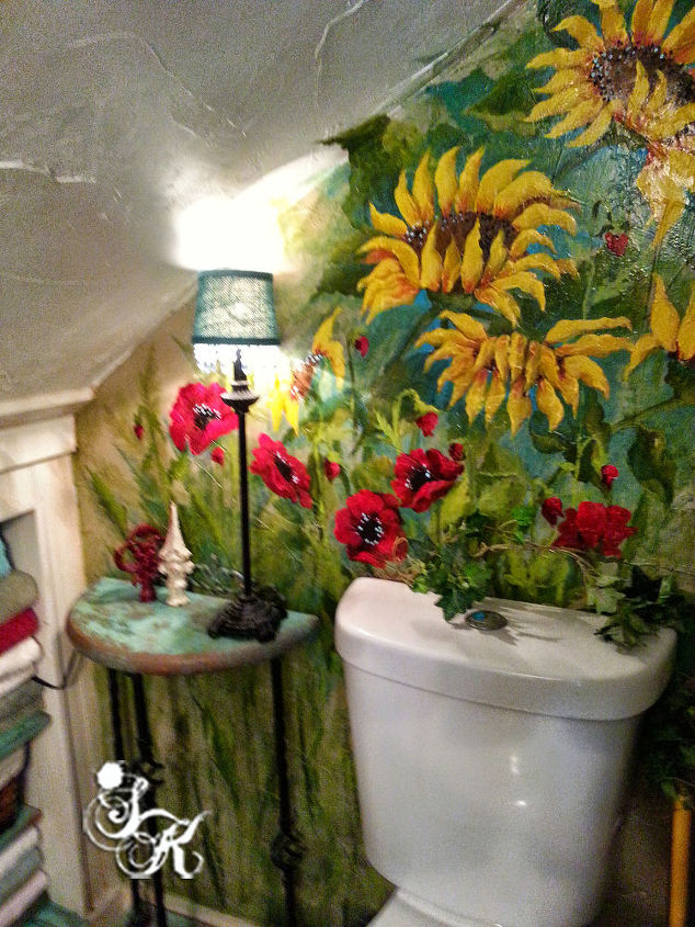 Hand Painted Flower Mural In Small Bathroom Hometalk