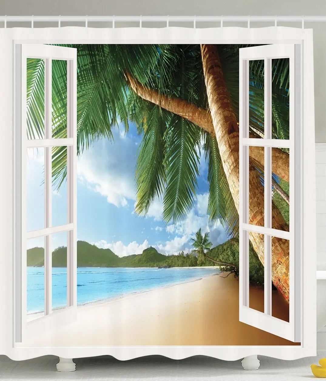Coastal Beach Scenery Printed Pattern Shower Curtain Pedestal Rug