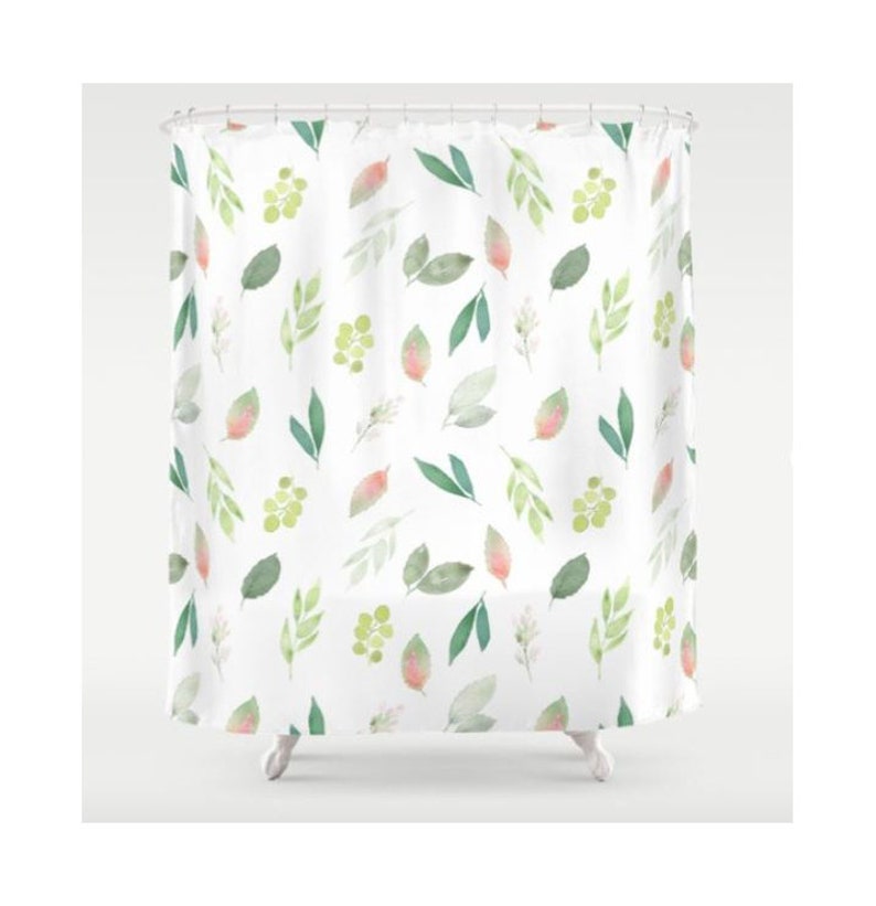 Floral Shower Curtain Leafs Fabric Shower Curtains Bathroom Etsy