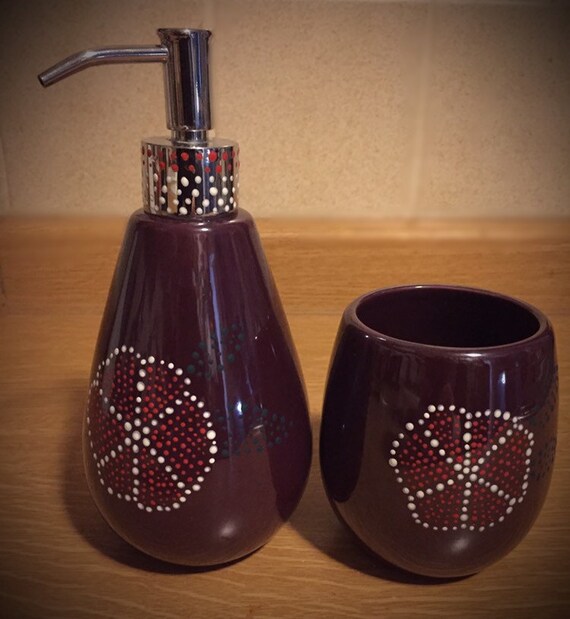 Unique Hand Painted Dark Purple Poppy Design Bathroom Set Etsy