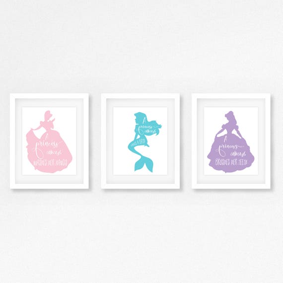Disney Princess Wall Art Girls Bathroom Art Bathroom Rules Etsy