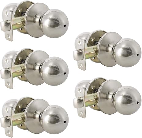 5 Pack Satin Nickel Privacy Door Knobs Round Ball Interior Door