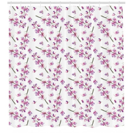 Purple Decor Shower Curtain Hazy Delphinium Floret Branches With