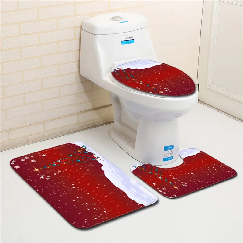 Free Shipping 3 Pcs White Christmas Tree Red Bath Mats Anti Slip