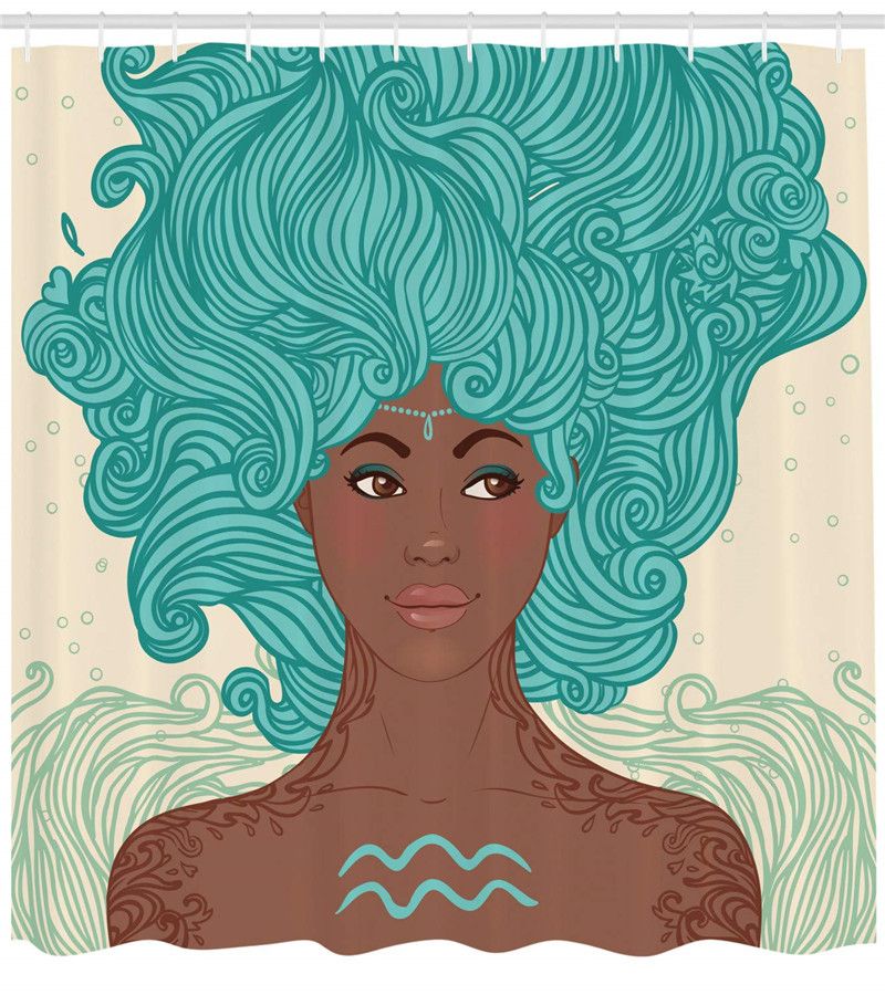 2020 Zodiac Aquarius Shower Curtain African Ethnic Lady Beauty